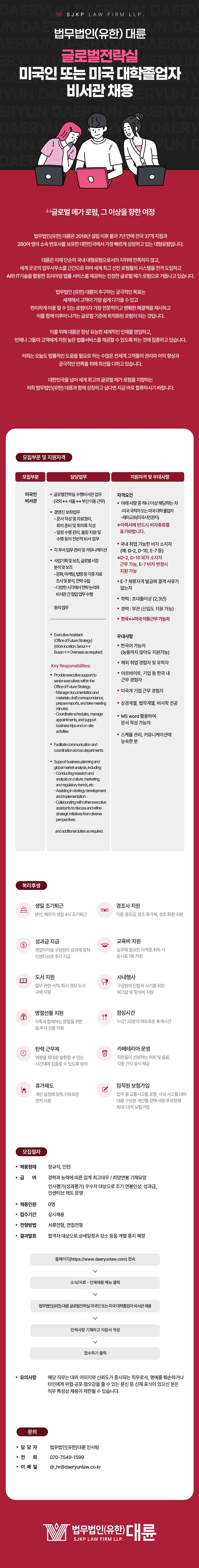 [직원] 법무법인(유한) 대륜 글로벌전략실 미국인 또는 미국 대학 졸업자 비서관 채용